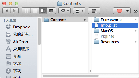 在 Contents 文件夹里,找到 Info.plist 文件,双击打开。要是弹出已锁定什么的警告,就点解锁。再不行去上级文件夹改读写权限(记得办完事改回来)