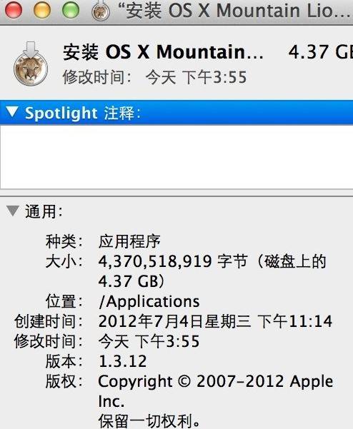 如果你的文件计算出来的MD5 与 小弟的相同就说明您下载到的是 GM 版本的 OS X 10.8 文件