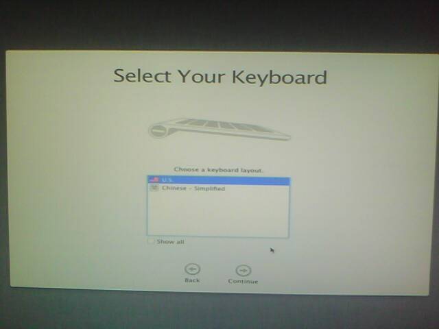 3.选择语言.虽然这个版本的安装程序的简体中文有问题,但这仅限于安装程序.当你选择简体中文作为安装过程的语言,在安装完进入系统后,系统完全是中文的,没有任何问题,.如果你觉得看着不爽,可以选择繁体中文,英文或者其他语言.点击继续.