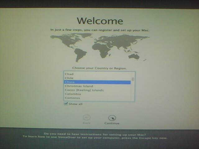 9.完毕。重启进去引导界面-选择变色龙-回车 看到盘符了, 你安装好的系统盘会是一个苹果盘符,这时 注意 ,将箭头指向苹果那个盘符后不要急着点击回车,这时直接输入 -v -f 进系统, 你会看到刚开始安装的画面,黑底白色 一行一行的扫描 ,如果你等了20分钟,看到卡在什么地方 , 你就需要查资料了 是不是装驱动 多装了,还是少装了什么吗,百度 搜索,如果你很幸运的话 ,选对了 就直接看到下面的界面了
