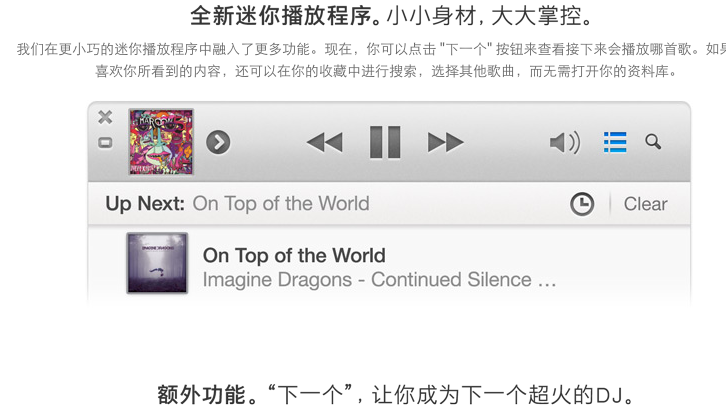 接下来看看 iTunes 布局。新版本用户打造了一个无边框的 iTunes 体验,不仅更为美观而且也更为简洁——我们熟悉的那些挂在 iTunes 左边栏的音乐、视频资料库、iTunes 商店、播放列表,以及与 iPhone、iPod、iPad 进行同步连接的选项不会再在打开 iTunes 时第一时间现身了。