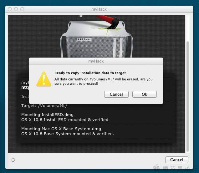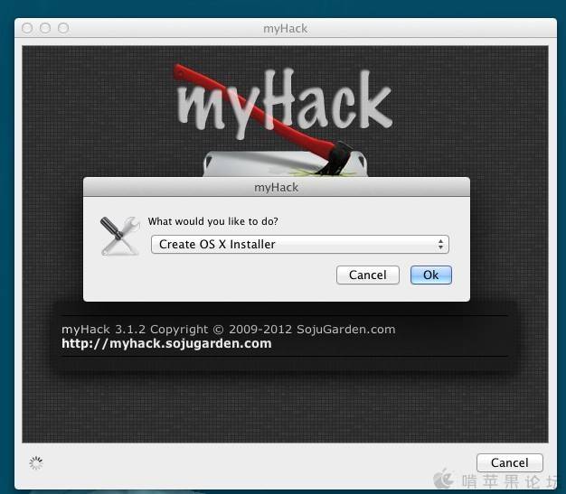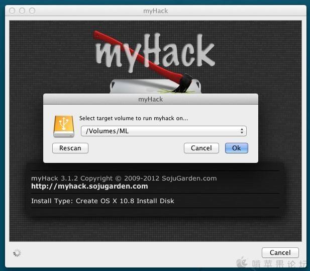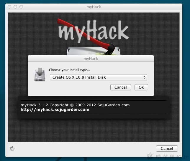 从LION开始,苹果将系统放在App Store中出售了,而最新的Mountain Lion更是还安装U盘都不出售了,所以有很多人不知道怎么制作能全新安装Mountain Lion的安装U盘。论坛上有制作方法但比较繁琐,又要恢复DMG文件镜像,又要复制文件,又要显示隐藏文件的,对于新手来说就比较困难了,而myHack的出现就很好地解决了这一问题,下面将myHack的操作方法简单地介绍一下: