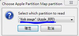 然后再弹出视窗里选含有HFS+那一项,然后选确定即可。