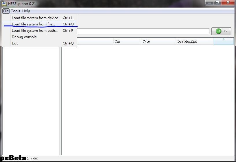 打开HFS-Explorer点"File"—>"Load filesystem from file".