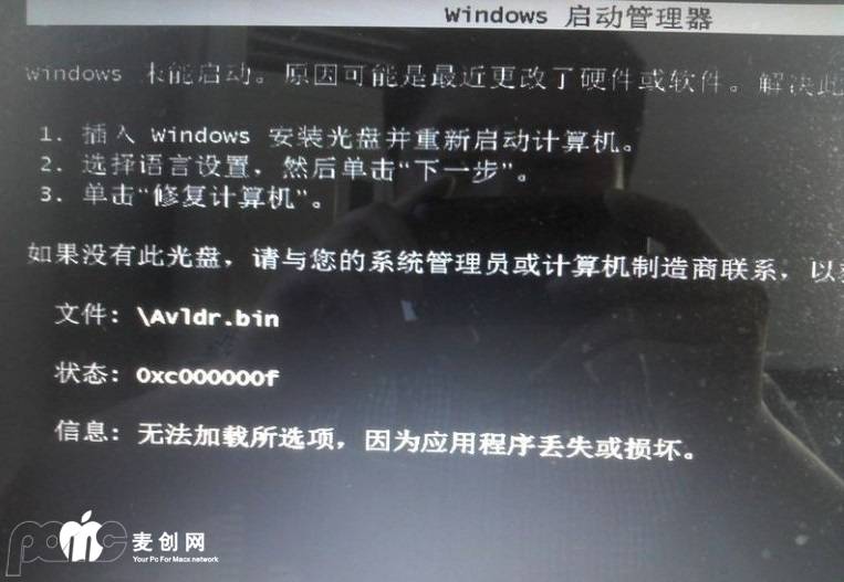 这是出错的提示。因为从第一张图上看我的C盘就是hd01了,而恢复分区就是hd00,而avldr.bin默认寻找在hd01中寻找wowpc.iso。因为我恢复分区中没有,所以没办法引导了。这也是很多用户,有的电脑分区不同,C盘前面可能还有其它分区的情况时,这里我们需要替换Avldr.bin来解决这个错误。