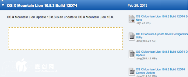 OS X 10.8.3 正式版更新 离我们更近了 果粉闲谈交流 13/3/1 3.2k 6 反正10.8.3 更新快了 坐等吧 苹果在2月初发布OS X 10.8.3 (12D68)测试版之后,今天又向开发者发布了build 12D74的最新测试版。这次新的测试版仍然没有什么较大改变。 苹果在新的测试版中没有给出已知问题,仍然要求开发者针对AirPlay, AirPort, Game Center,显卡驱动以及Safari 进行测试。 有人说10.8.3可能是10.8最后一个版本,但是目前有关10.9系统的消息真的太少了,所以另一部分声音认为10.8系统还将有多次升级。
