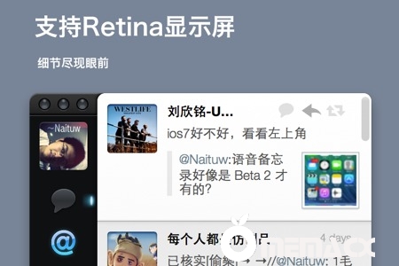 你可以在偏好设置中选择每一类通知显示的位置,状态栏和程序图标上的标记让你第一时间获知微博新消息。今后还会添加通知中心支持。