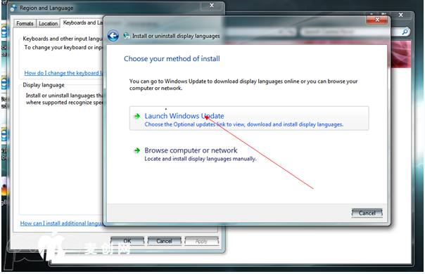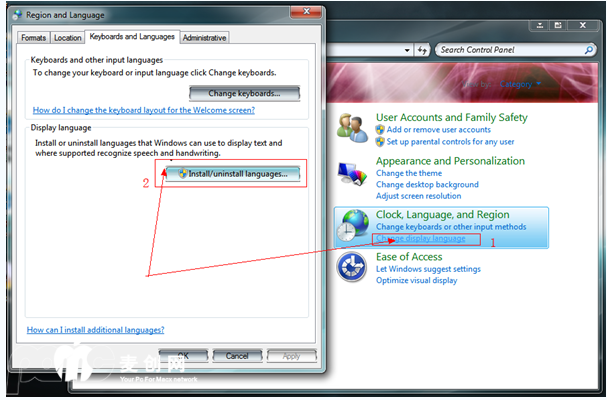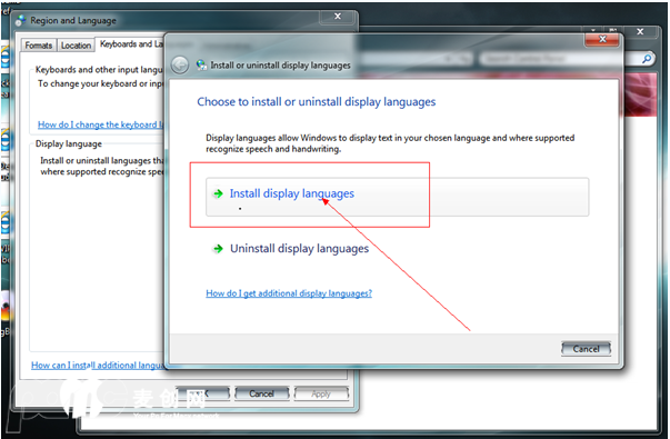 然后跳出一个窗口 点箭头2标的地方 install/uninstall languages(安装卸载语言)