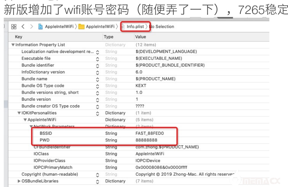 Intel无线网卡驱动 For macOS [intel WiFI 7265AC] 驱动永久更新 黑苹果网卡驱动 20/2/8 49.1k 45 intel 7265 Intel无线网卡驱动macOS 驱动 7265ac更加稳定 分两个版本: 更新:本次更新:1、支持TKIP加密(只使用此加密方式,丢包会少一些)问题: 1、丢包严重(没解决) 2、只使用TKIP加密,使用几分钟必死,wifi无法关闭建议wifi不要设置密码可以使用 注意需要设置wifi账号密码 文件以后放入github: https://github.com/a565109863/AppleIntelWiFi_Debug/releases 驱动:DEBUG版,不要放到驱动目录里面, 最好放在tmp下 sudo mv ./*.kext /tmp sudo chown -R root:wheel /tmp/*.kext sudo kextload /tmp/*.kext 版本1:支持Catalina 10.15(只支持10.15,不向下兼容) Intel无限网卡macOS驱动下载: 游客,如果您要查看本帖隐藏内容请回复 版本2 支持10.14.6 intel 7265AC 无限网卡macOS驱动 游客,如果您要查看本帖隐藏内容请回复 驱动永久更新:游客,如果您要查看本帖隐藏内容请回复 2021.8.黑苹果Intel 无线网卡驱动 游客,如果您要查看本帖隐藏内容请回复 intel无线网卡网卡驱动formacos