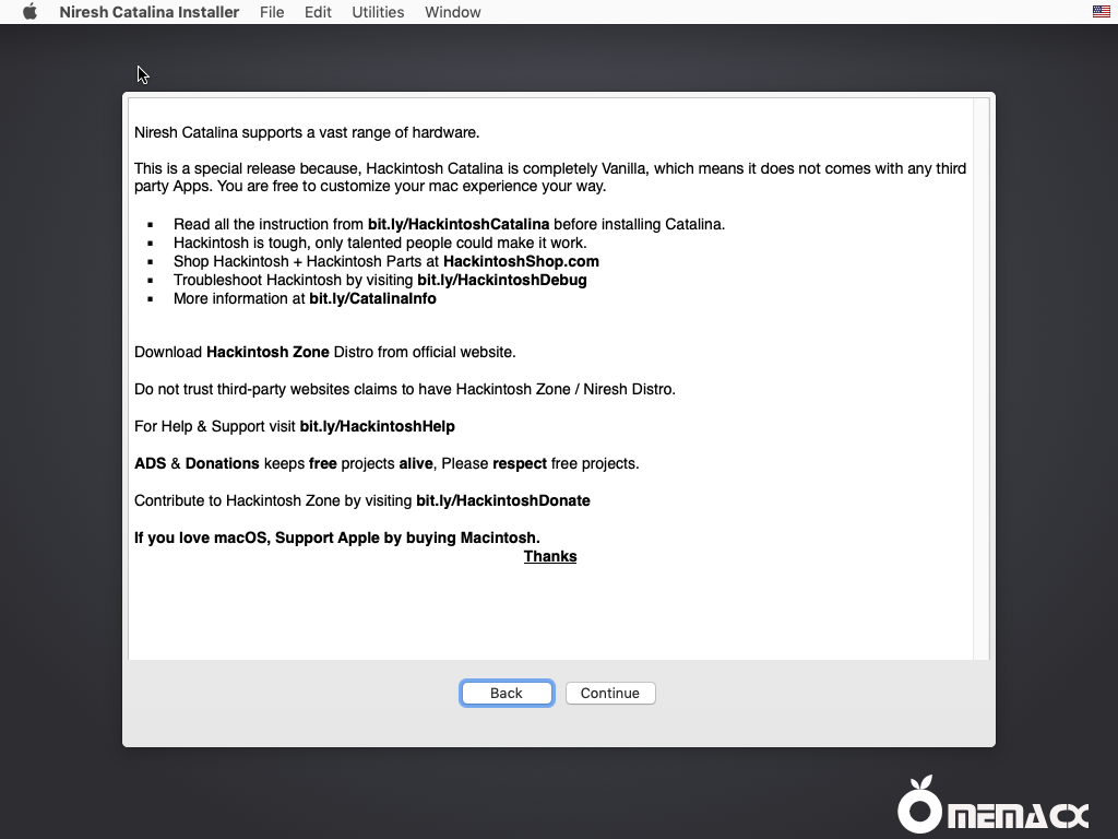 如果您无法进入Niresh Catalina菜单,请检查主板的BIOS设置,以确保正确应用了在步骤6中所做的更改。如果是,但仍然不能从Niresh Catalina USB驱动器启动,请拔下USB驱动器,然后返回到步骤4。使用“磁盘工具”重新格式化USB驱动器,然后重试。如果其他所有方法均失败,请尝试为Niresh Catalina使用其他USB驱动器。