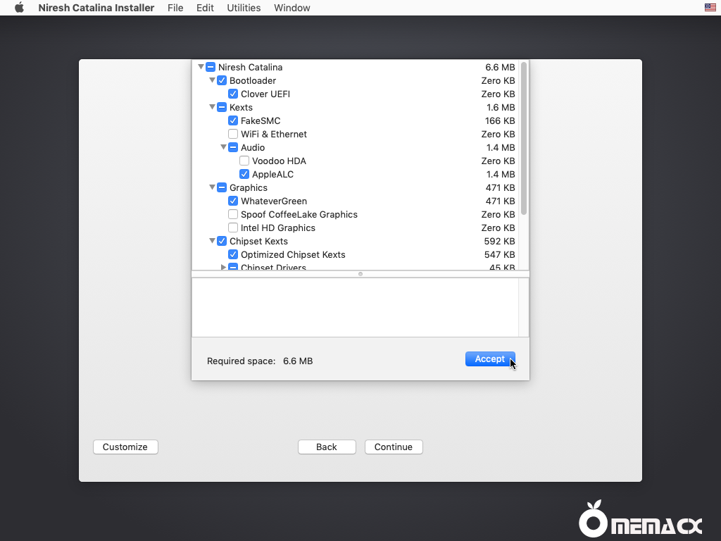 如果您的计算机已经安装了macOS,而您只是将其更新为Catalina,则只需取消选中所有这些选项即可。macOS将Catalina视为另一个更新,无需重新安装所有的kexts和驱动程序。