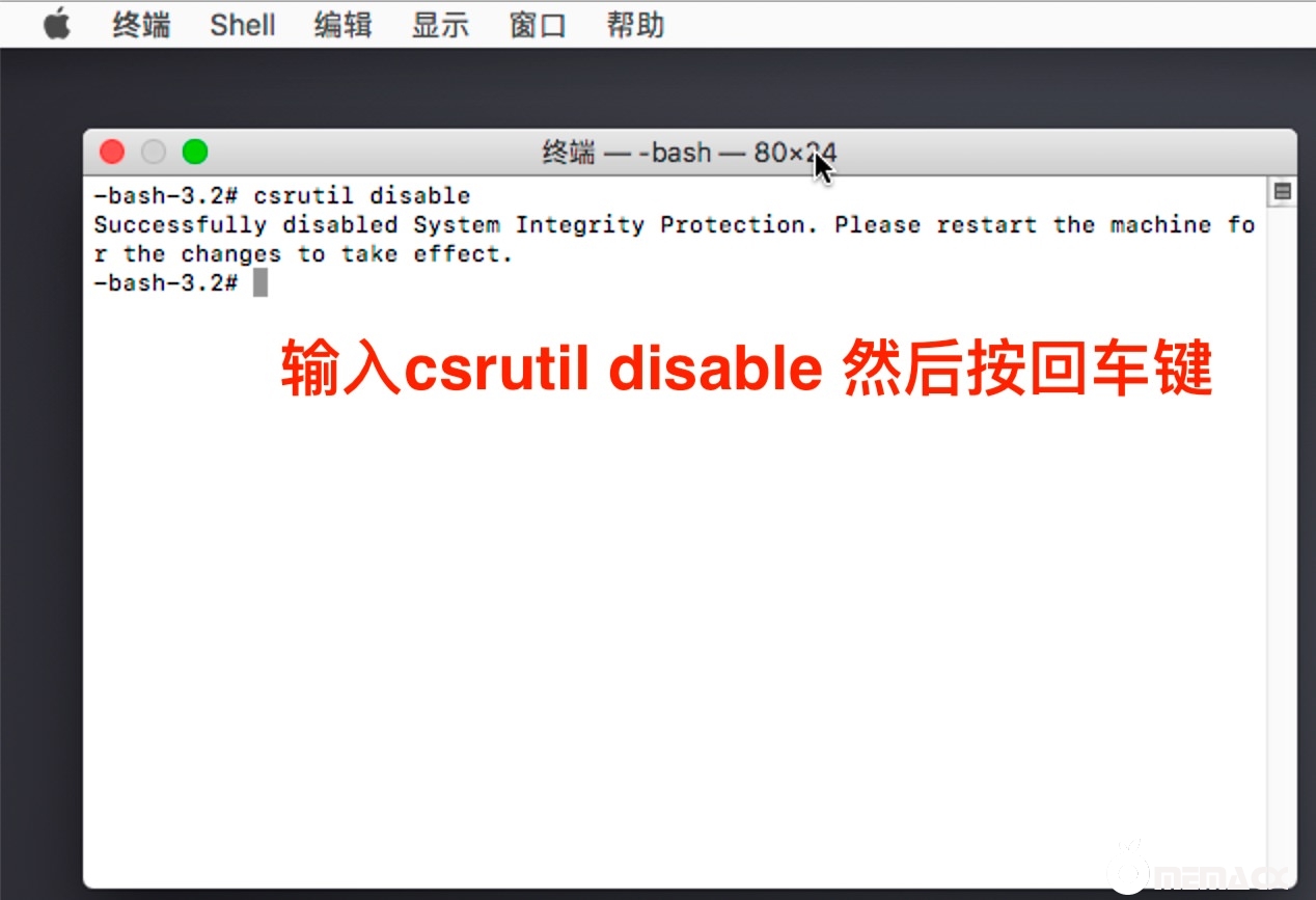 关闭SIP (System Integrity Protection )系统完整性保护的方法: