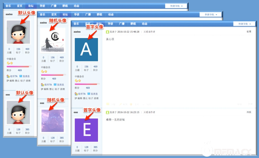 Discuz首字用户头像/字母生成头像 [ Discuz插件] Web网络开发 21/10/10 1.4k 0 1.可针对全站用户、未上传头像用户设定 2.可设定随机头像或首字头像 Discuz兼容版本 : X2 X2.5 X3 X3.1 X3.2 X3.3 X3.4 X3.5 Discuz首字用户头像/字母生成头像 yulun_extavatar.zip (9.77 MB, 下载次数: 0, 售价: 20 金钱) 21/10/10 18:48 上传 点击文件名下载附件 首字头像 Discuz插件,DZ用户头像设置 discuzdiscuz插件用户头像字母头像
