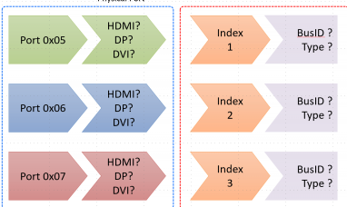 一些主板上,Port 0x05 可能被连接到HDMI接口,而在其他的主板上可能被连接到DP、DVI或者是VGA。同样的,Port 0x06、Port 0x07在不同的主板上会被连接到不同的物理显示接口。为了解决HDMI/DVI黑屏的问题,我们首先需要确定主板上的哪个显示接口连接到了HDMI接口(如果主板上有HDMI接口的话),哪些连接到了DVI,哪些链接到了DP或者VGA接口。
