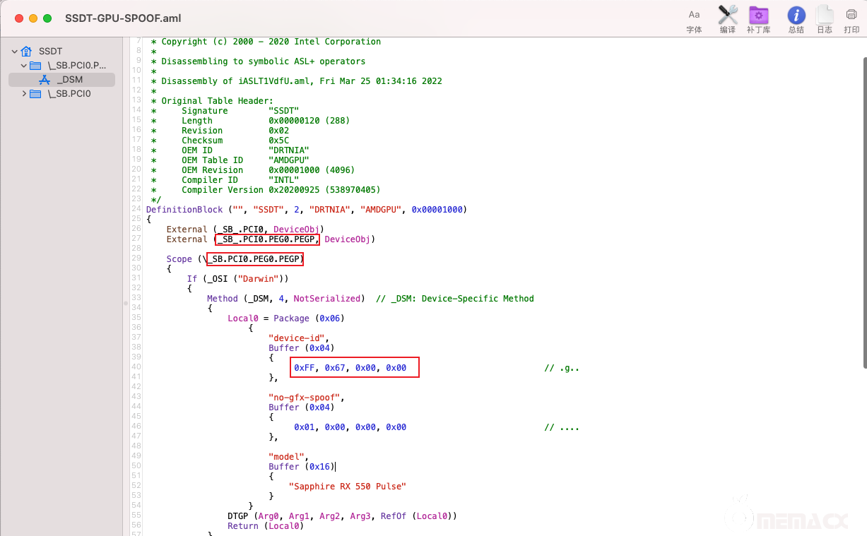 2、在oc acpi中放入gpu-spoof.aml文件,文件中仿冒,支持硬解