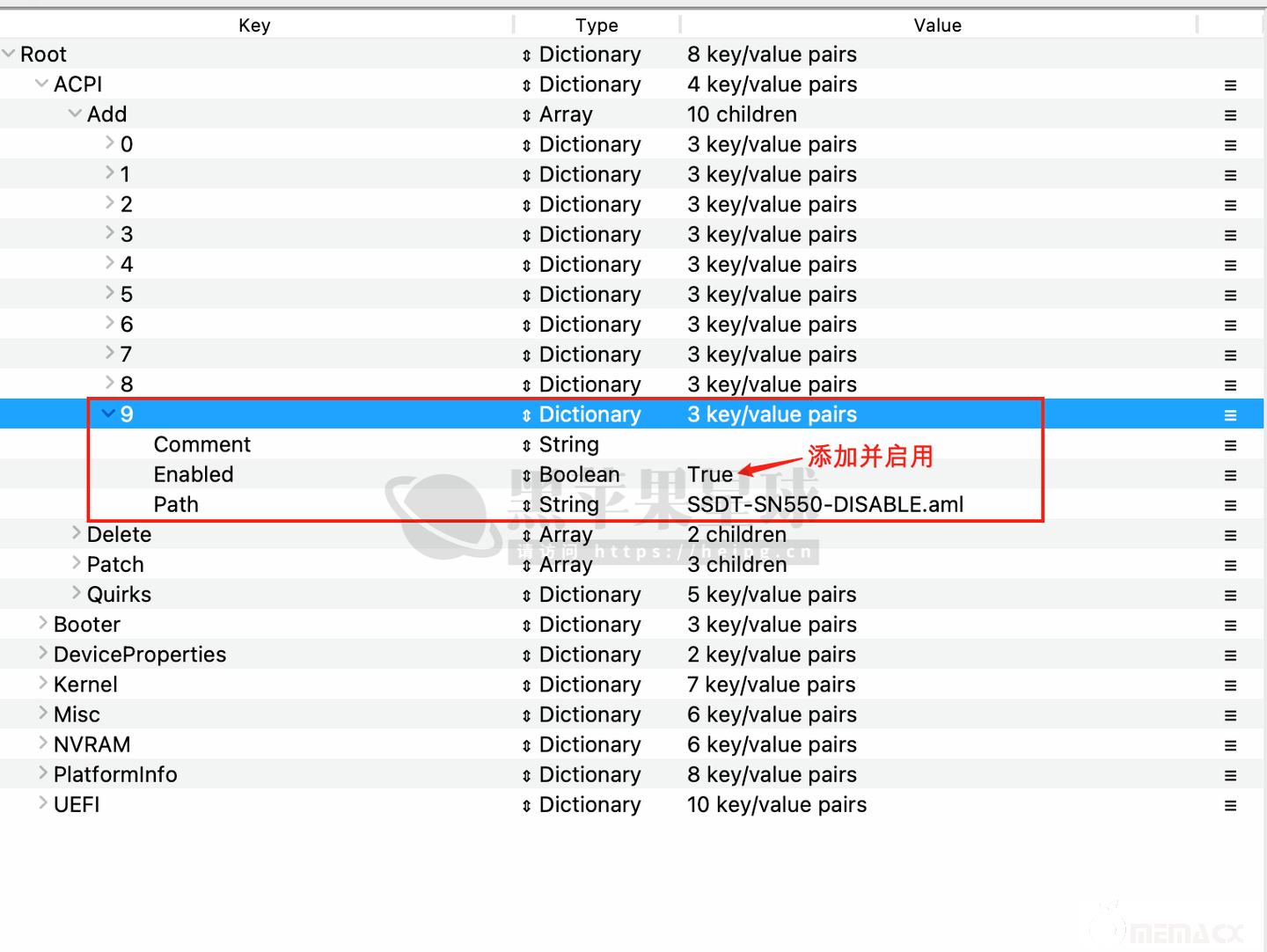 然后打开 OpenCore Configurator / Clover Configurator / OpenCoreAuxiliaryTools / ProperTree 编辑器,照图输入: