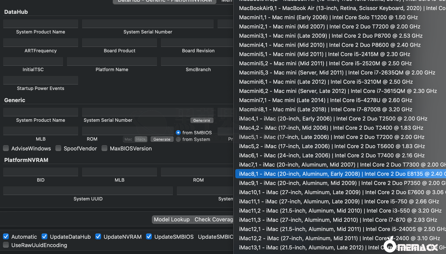 对于如何选择合适的 SMBIOS ID,老手应该心里有数不会有问题。对于不明白的新手,看下面的例子: