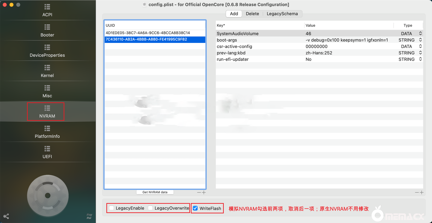 运行 OCC,使用它加载你的 config 文件,切换到 PlatformInfo → DataHub-Generic-PlatformNVRAM,找到 Generic 部分,见图: