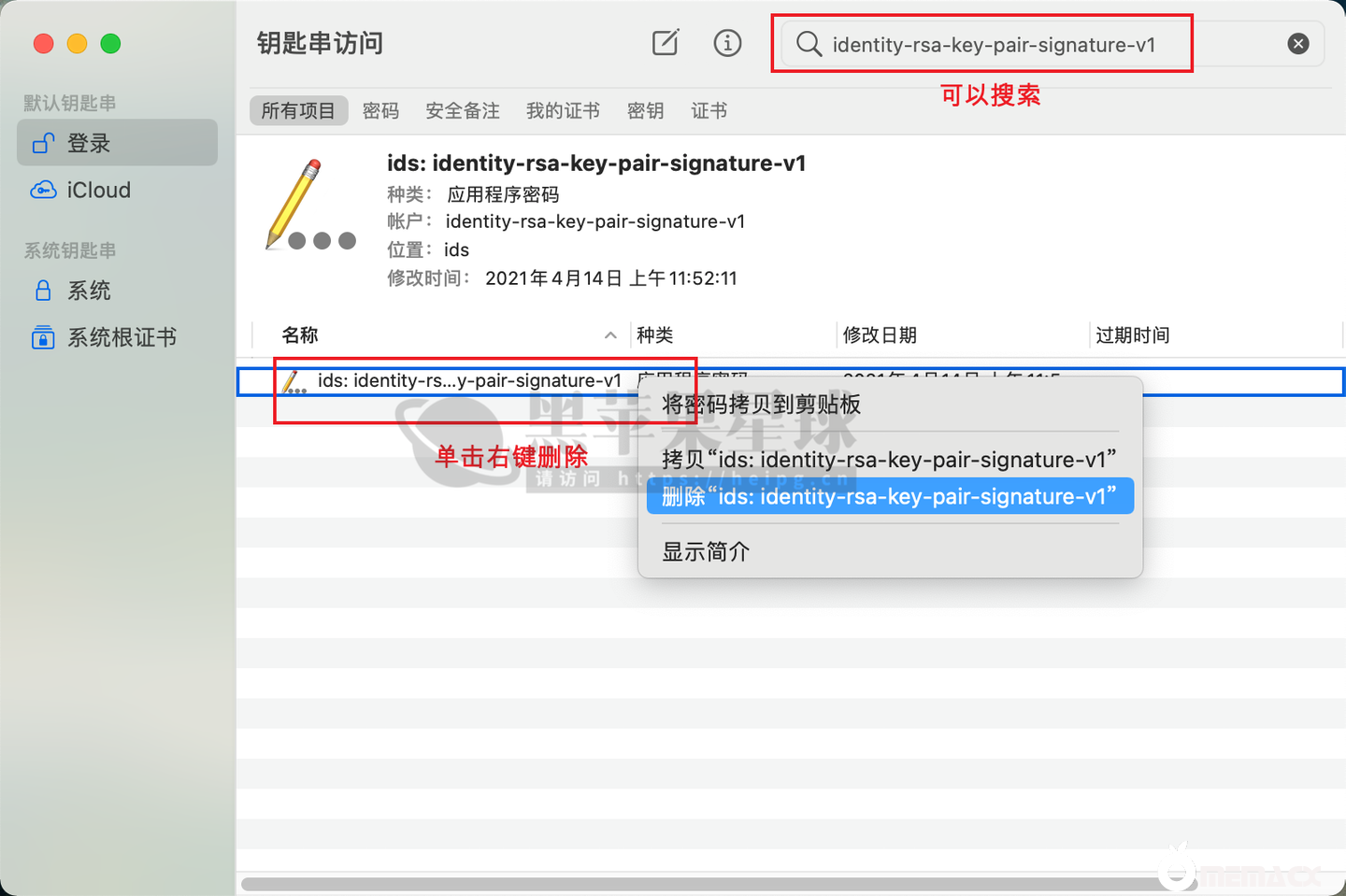 「注意」如果找不到钥匙串,按下 Command + 空格,调出聚焦搜索,输入“钥匙串访问”,第一个结果就是。