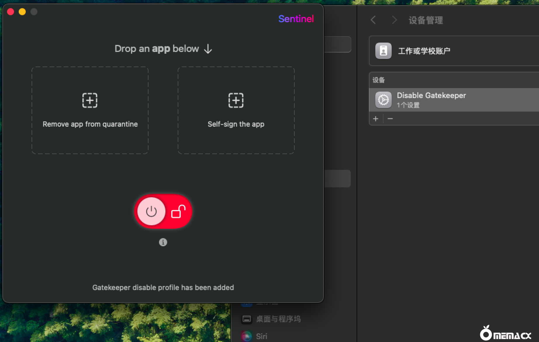 macOS Sequoia 15 安装三方应用程序,启用允许“任何来源” 苹果电脑讨论 24/12/4 446 0 macOS Sequoia 15 安装第三方应用程序 会显示安全性提示,可以通过一个小程序来打开它 由于 Apple 禁用了spctl命令启用任何来源的,因此macOS Sequoia 及以上版本的允许“任何来源”不能通过终端命令来禁用gatekeeper。 可以通过Sentinel,打开关闭gatekeeper,实现允许"任何来源"。无需进入系统设置点击"仍然打开 Sentinel.zip (2.18 MB, 下载次数: 0, 售价: 1 金钱) 24/12/4 19:58 上传 点击文件名下载附件