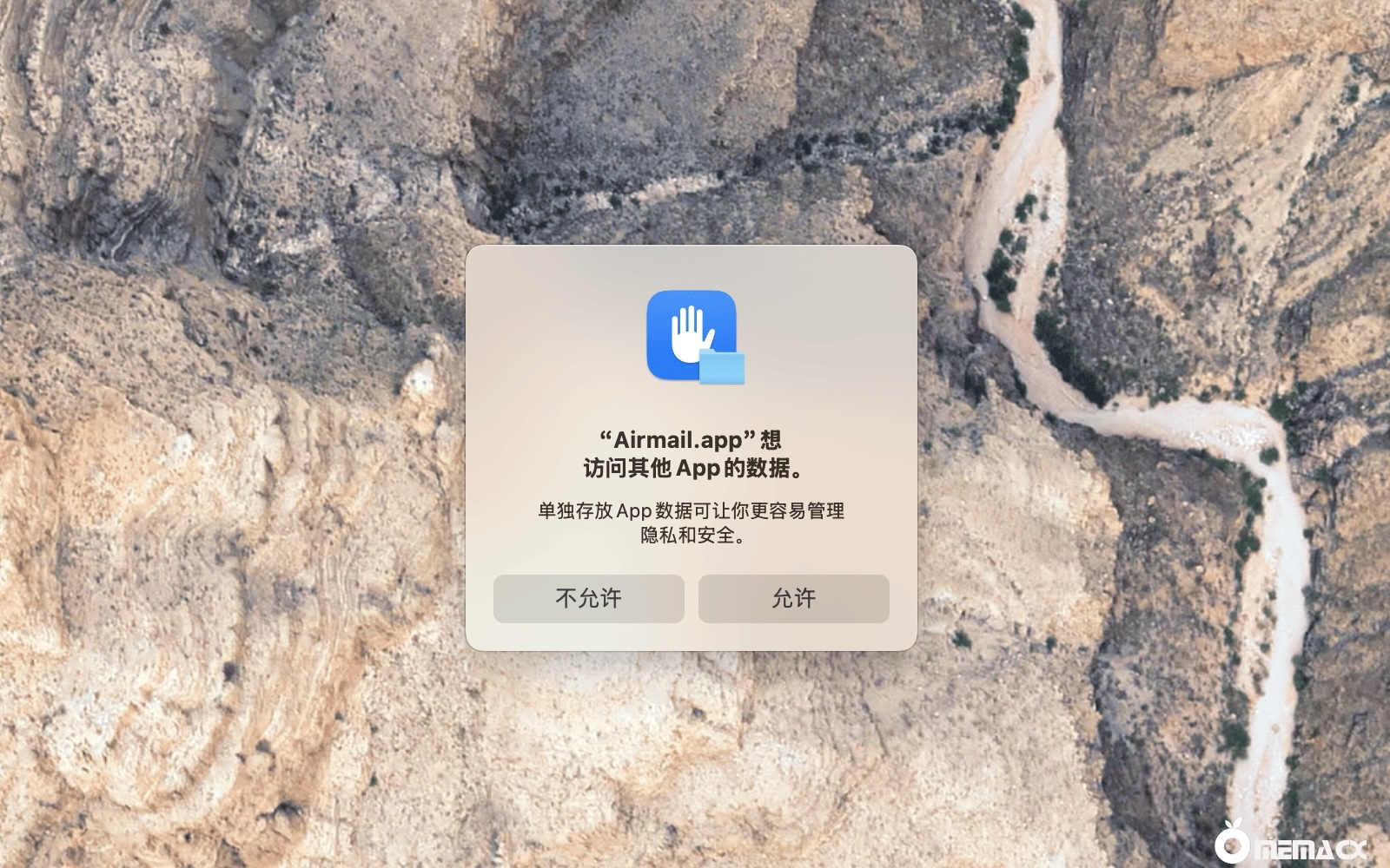 升级macOS 15 Sequoia打开软件提示“X想访问其他App的数据”办法 苹果电脑讨论 24/12/5 417 0 升级macOS 15 Sequoia后,打开某些软件时会弹出如下提示: "Airmail.app" 想访问其他App的数据。 单独存放App数据可让你更容易管理隐私和安全。 点击“允许”后可正常打开软件,但是每次打开软件都会有这个提示,如何去掉这个提示呢? 方法很简单,打开“系统偏好设置 → 隐私与安全性 → 完全磁盘访问权限”,点击左下角“+”然后选择应用程序目录里的这个软件,打开开关即可。