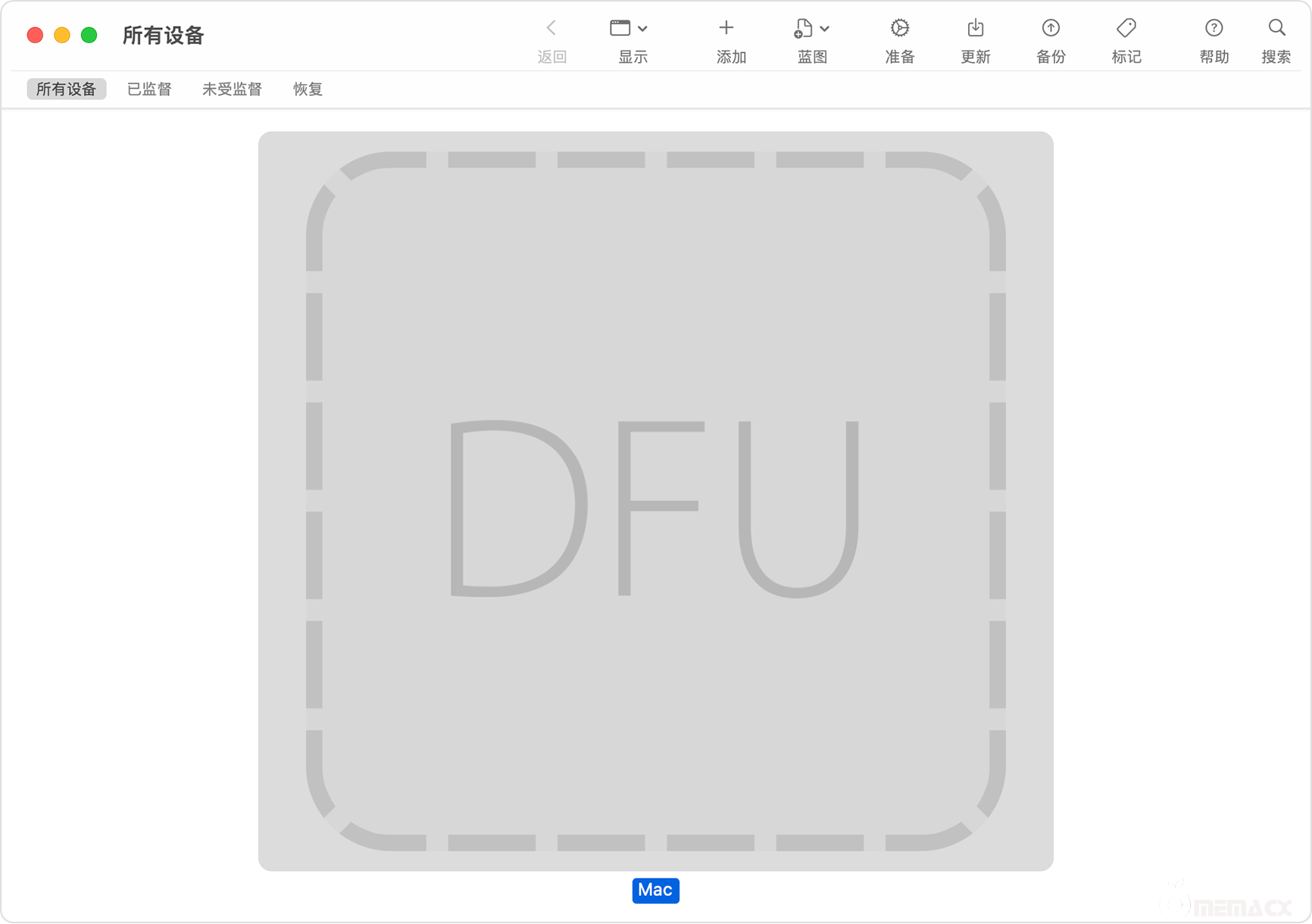 (1)目标 Mac 尚未启动到 DFU 模式,显示如下: